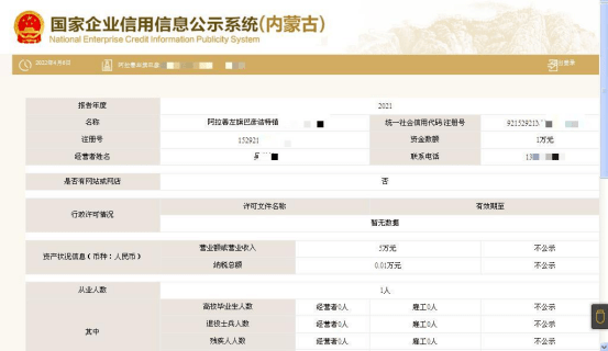 ●需填报联系电话、从业人数、资金数额、是否有网站或网店等基本信息。不公示信息中,若无高校毕业生、退役士兵、残疾人、再就业人员雇工,需在“经营者”和“雇工”数量处填“0”,若不填写无法保存。