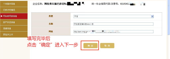 ●此步骤为填报完成前的一步,检查所填写的所有信息,确认无误后点击“提交并公示”,选择“确定”完成公示。