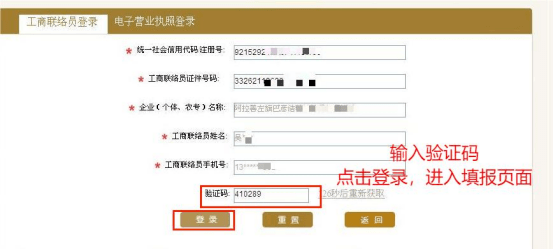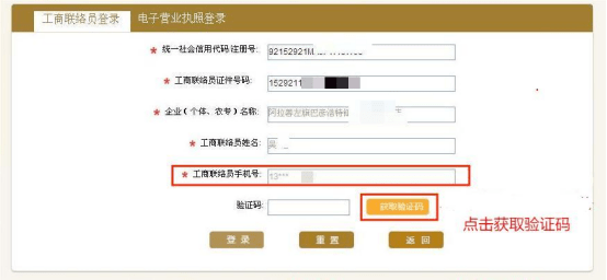 ●输入统一社会信用代码后,点击页面任意空白处,将自动生成名称、姓名、手机号等信息。(工商联络员证件号码需要手动输入)