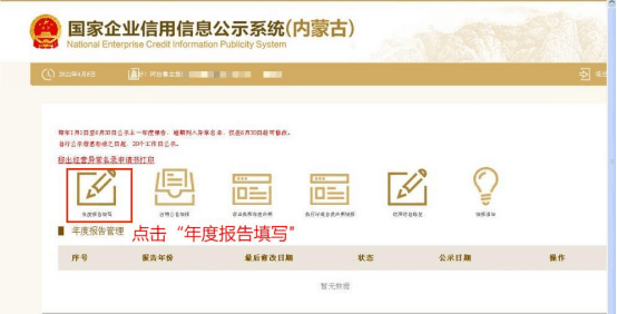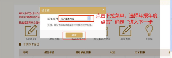 注意:如果存在以往年度未报送的情况,需补报以往年度年报后才可申报本年度报告。