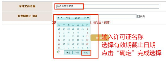 ●需点击“添加”,填写相关许可信息,如食品经营许可证、药品经营许可证、卫生许可证、特种行业许可证、文化经营许可证、食品生产许可证等等行政许可。